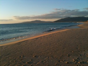 Arriving in Tarifa, the first thing I saw were the wind energy generators. You know, those big 3 armed white steel things sticking in the ground. My picture wasn’t so hot but check out this photo of a wind farm. Spain is the 4th largest producer after China, US and Germany. Then we came round to the ocean… yes still from the moving vehicle.