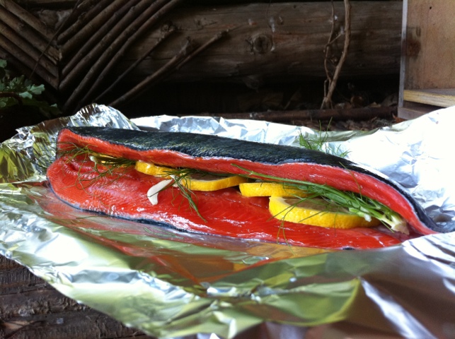 Back on island now, we love last minute dinners because within a half mile in all directions, we have the luxury of picking and purchasing such arrays of foods like this. Just picked raspberries, kale, chard, snap peas and fresh eggs that have not seen the inside of a refrigerator and once again, local Sockeye.